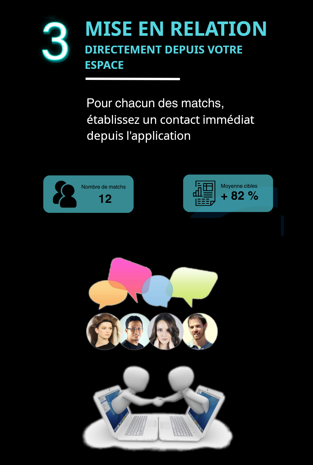 • Mise en relation immédiate : commencez à échanger à chaque match présenté.
